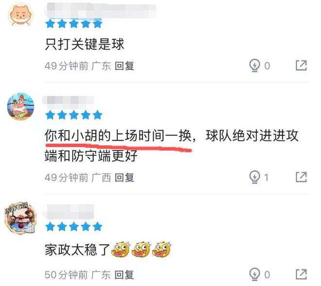 本輪廣東以5分優勢擊敗深圳的比賽中,陳家政在8分鍾的上場時間裏,三分球2中2,拿到6分。而這兩個三分球,都是那種大心髒的關鍵三分。作為對比,本場比賽胡明軒打了25分鍾,隻得到3分(5中1)。有球迷表示:“把胡明軒的時間給陳家政吃了吧。”