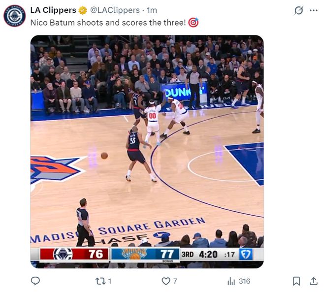第三節哈登6中2+三分2中1+罰球4中4拿到9分1籃板3助攻1搶斷,三節打完21分8助攻3籃板2搶斷,而倫納德第三節隻拿到4分,三節打完25分1籃板1助攻,快船已經被尼克斯反超。