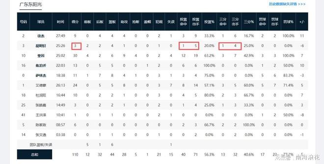 講真,昨晚如果不是杜潤旺及時複出,如果不是小將陳家政的高效輸出,兩記三分給球隊續命,早已輸掉比賽了,就像輸給浙江隊那樣恥辱。上一場被絕殺,就是輸在胡明軒,全場打了36分鍾,11投隻有3中,三分球8投2中,瘋狂打鐵,還頻頻失誤,多次不傳球給有空位的隊友,還罰球不中,大空位三分不中,表現真是糟糕透頂。現在查明胡明軒三項命中率均低於山東高鐵(高詩岩),被球迷給了一個新外號——胡鐵!但是奇怪的是,這樣場場拉胯的隊員卻得到杜鋒的重用。球迷說昨晚若是把胡明軒的時間分給陳家政,早收割比賽了,不用打到最後一分鍾才分勝負。