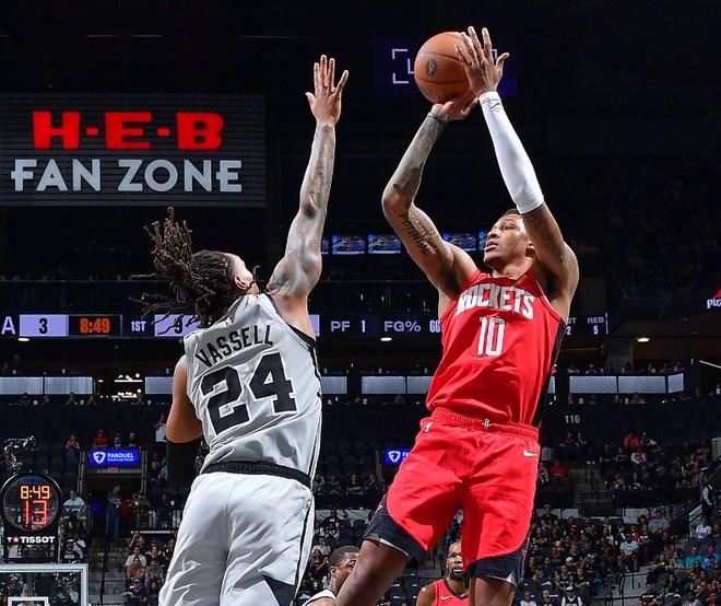 防守端馬刺也是不給火箭任何大空位機會,想拿到一個輕鬆出手的投籃都很難。對杜蘭特馬刺采取和灰熊同樣策略,就是無限夾擊。杜蘭特作為火箭的進攻箭頭人物,出球能力不足一直是他的老毛病,他需要外線有另一個強大的牽製點,就像當年在勇士時有庫裏那樣的射手分擔壓力。但火箭沒有那樣的牽製力,於是杜蘭特壓力極大,加上年齡上來,有心無力啊。可能上謝潑德時會好一些,但一旦火箭切換到五大陣容,馬刺的夾擊就變得肆無忌憚,火箭缺乏有效的破解手段。