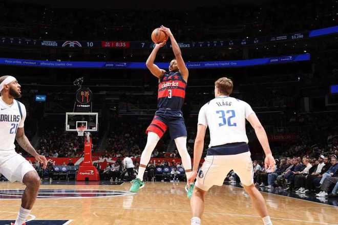 中場休息回來,麥科勒姆第三節0分,但惠特摩爾爆發引領奇才全場首次單節轟下30+得分。獨行俠率先被追到59-58僅領先1分,弗拉格攻傳結合引領一波9-2攻勢拉開比分,惠特摩爾連續內線肆虐得分,引領奇才打出一波21-7攻勢反超6分。獨行俠繼續被拉開77-84落後差距,獨行俠連追5分,奇才再得2分,獨行俠單節25-33輸掉8分,三節結束獨行俠82-86被奇才反超4分。前三節比賽,獨行俠三分僅19中4,馬紹爾22分與弗拉格10+5+4,奇才三分26中9,麥科勒姆23分與惠特摩爾19分,引領奇才4人得分上雙。