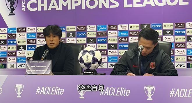 成都蓉城客場2比2戰平神戶勝利船的賽後,韓國籍主帥徐正源在新聞發布會上點評成都蓉城這場比賽的表現時,主動談及中超三強排名東亞區倒數前三這一尷尬形象。