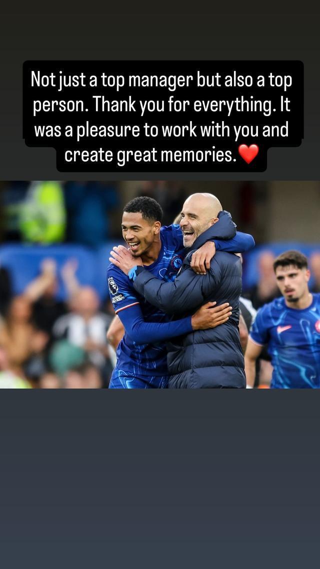 在切爾西官方宣布主帥馬雷斯卡離任後,切爾西後衛科爾威爾在社交媒體告別馬雷斯卡。