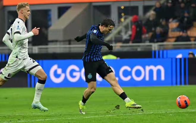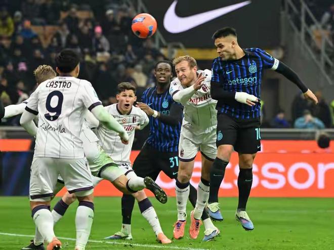 易邊再戰,國米的攻勢愈發猛烈。下半場開始僅3分鍾,藍黑軍團就利用定位球機會擴大了比分。恰爾汗奧盧開出角球,皮球精準地飛向禁區後點,中衛勞塔羅·馬丁內斯在人群中高高躍起,憑借強大的製空能力力壓防守球員,一記勢大力沉的頭球攻門直掛死角,國米2-0領先。這粒進球徹底點燃了梅阿查球場的氣氛,也讓比賽的天平完全傾斜向了主隊。