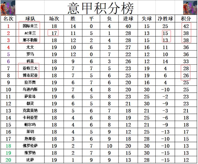 積分榜方麵,國米客場完勝帕爾馬後豪奪6連勝,先賽的他們多AC米蘭4分,繼續坐穩榜首位置。那不勒斯今天本有機會暫時超過AC米蘭,但他們卻在主場爆冷被保級區弱旅逼平,這樣的話,2個淨勝球的劣勢讓他們無法超過AC米蘭,還是排在第3。亞特蘭大在爭6大戰中擊敗博洛尼亞,超過後者升至第7。
