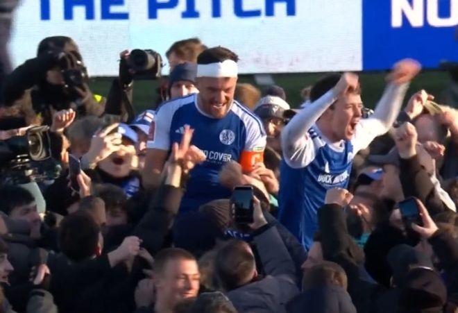 震撼!足總杯45萬掀翻2.3億 第6級別黑馬球迷衝場狂歡+舉起2功臣-24直播網
