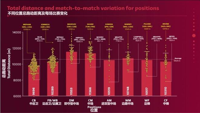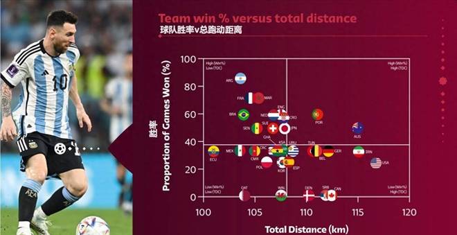 比如阿根廷、巴西和法國隊的跑動量都不到105公裏,相對跑動量更高的葡萄牙、比利時和德國隊要麽折戟16強,要麽直接小組賽出局。