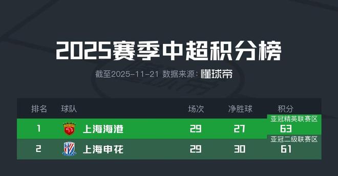 最後一輪上海雙雄都將客場作戰,朝著中超冠軍的榮譽發起衝擊。目前在積分榜上,上海海港占據絕對優勢,積分領先2分的同時,海港兩回合聯賽麵對申花1勝1平占據勝負關係優勢。這意味著即便兩支球隊最終同分,上海海港也將捧起本賽季的中超冠軍獎杯。