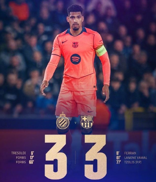 關鍵時刻,巴薩的年輕小將再次挺身而出。第77分鍾,亞馬爾在右路展現超強個人能力,突破防守後送出挑傳,布魯日球員佐利斯在頭球解圍時不慎將球頂入自家球門,巴薩憑借這記烏龍球3-3第三次扳平比分。補時階段,什琴斯尼後場控球被斷,弗曼特搶斷後打空門得手,但VAR介入後判定弗曼特搶球時犯規,進球無效,可以看出巴薩這場平局也是險平,球隊的低迷是很明顯的。